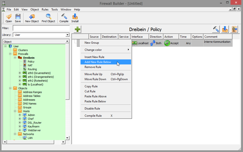 Neue Regel mit 'Rechtsklick ' auf eine bestehende Regel hinzufügen