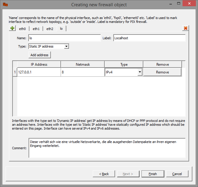 ...erst nachdem ALLE NICs hinzugefügt wurden, auf FINISH klicken