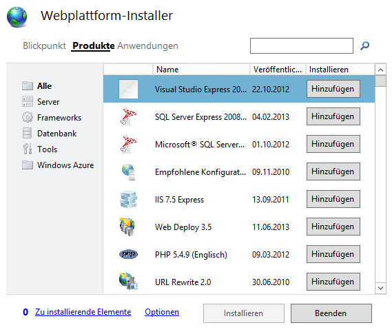 Mit dem Webplattform-Installer können auch ganze Content-Management Systeme auf ihrem IIS installiert werden: