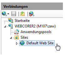 Der IIS hat standardmäßig eine “Default Web Site” eingerichtet, deren Aufruf man als Ersten testen kann: