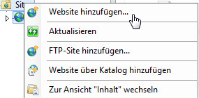 Rechtsklick auf Sites | Neue Site hinzufügen