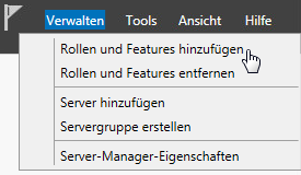 Navigieren Sie im Server Manager zu dem Punkt Verwalten und wählen ‚Rollen und Features‘