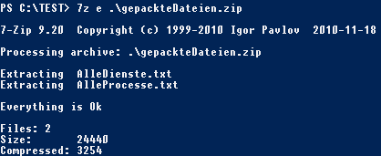 - Sie können das Programm nun jederzeit starten, indem Sie ‚7z‘ eintippen
