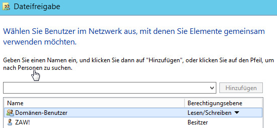 Freigabeberechtigung: “Jeder: Lesen und Schreiben”