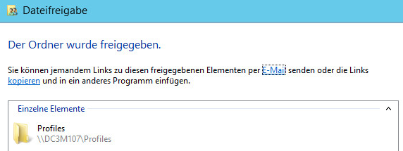 Nach dem Abmelden wird das Profil auf dem Server im freigegebenen Ordner gespeichert.