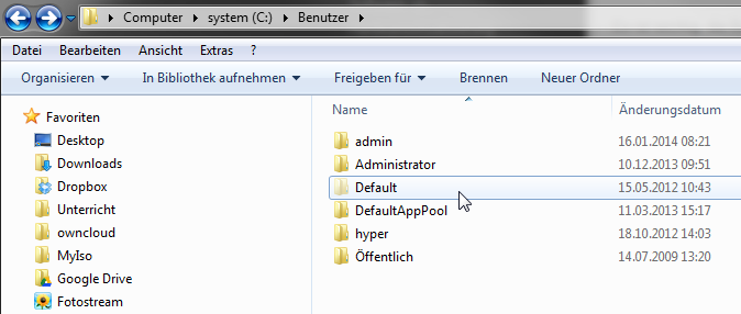 Der Unterschied zwischen diesen beiden Profilen ist, dass der DEFAULT USER (C:\Users\Default) die Basiseinstellungen für jeden neu angelegten User und ALL USERS ( C:\Users\Public) generelle Einstellungen für jeden Benutzer enthält. Wenn Sie beispielsweise möchten, dass jeder neu angelegte bestimmte Einstellungen erhält, dann sollten diese Einstellungen beim DEFAULT USER eingerichtet werden.
