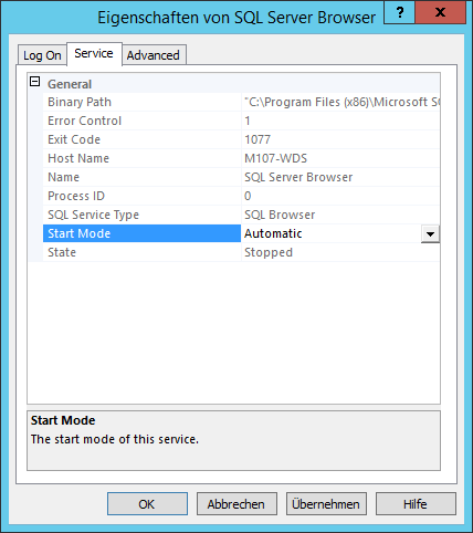 Unter dem Punkt „SQL Serverices“