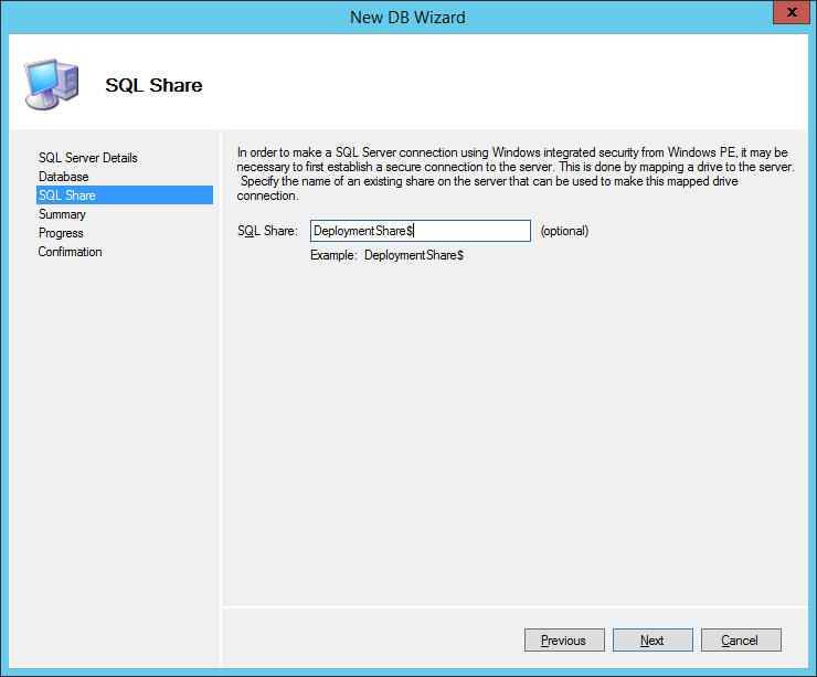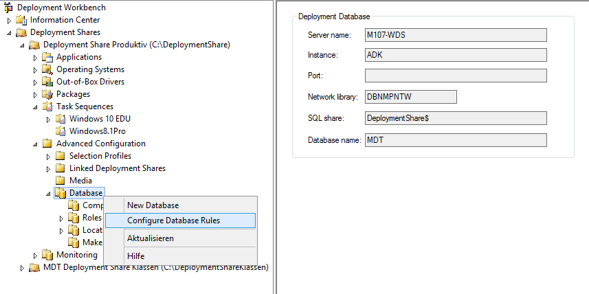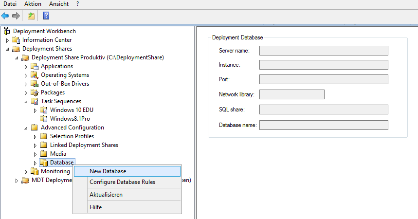 Geben Sie hier einen FreigabeOrdner an. Ist der SQL Server auf dem MDT Server, benutzen Sie den DeploymentShare, ansonsten müssen Sie einen neuen Ordner erstellen und diesen freigeben:
