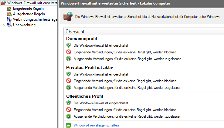 Dazu öffnen wir die ‚Firewall-Eigenschaften‘