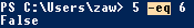 Negiert -not (1 -eq 1) die Anweisung, die auf den False Operator folgt. - !